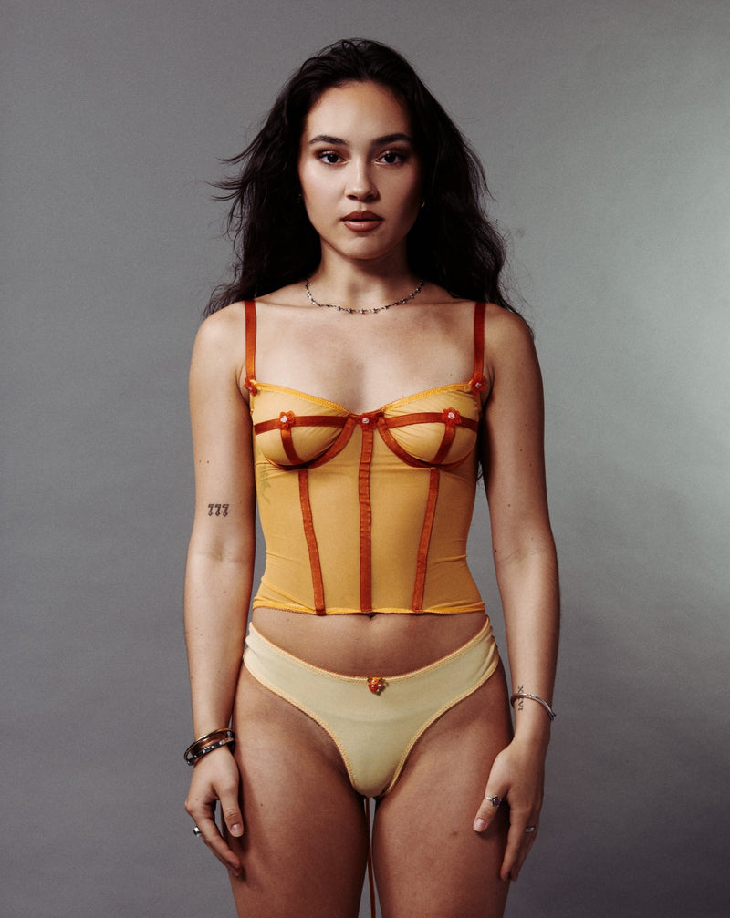 The Jane Thong is our base level panty with a mid rise cut and cheeky back. It comes in cotton or power mesh for comfort and variety. The edges are finished with elastic for stretch and shape.